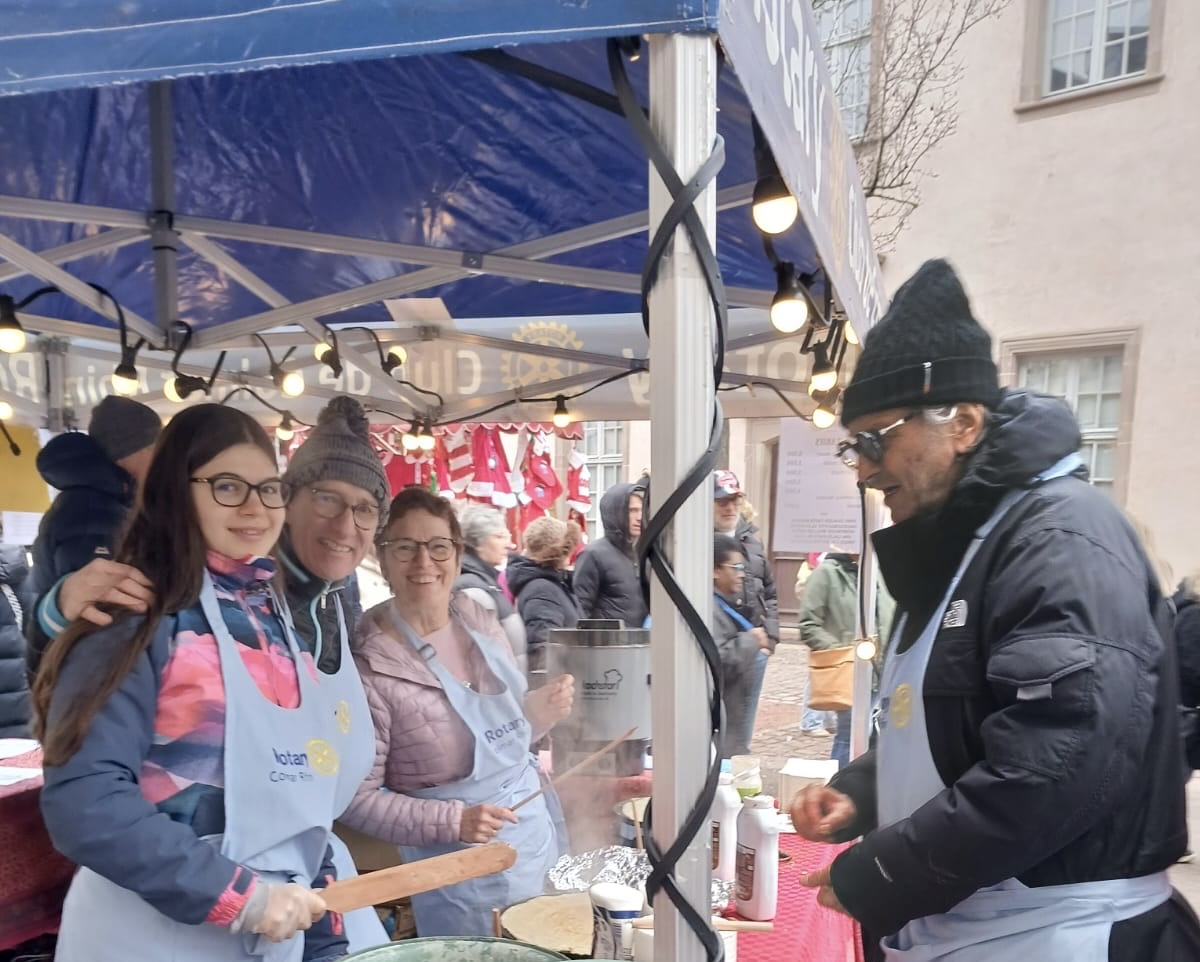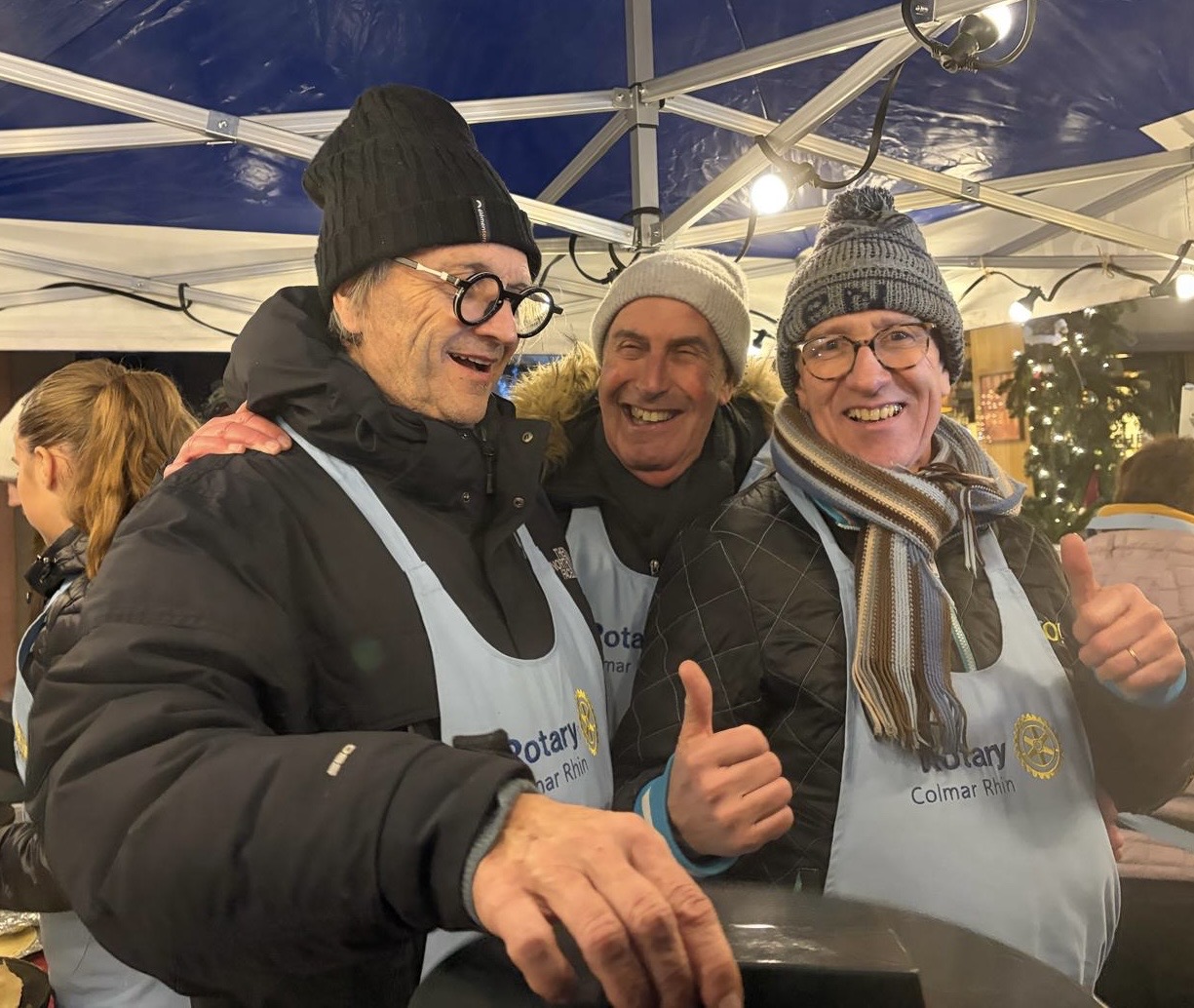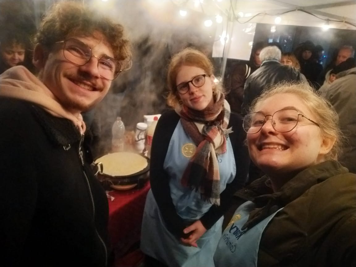 À l’occasion du marché de Noël, les membres de notre club, accompagnés des étudiants d’échange, des ROTEX et des membres du Rotaract, se sont pleinement investis pendant un weekend pour une belle action de solidarité autour de la vente de vin chaud, jus de pomme chaud, crêpes et autres gourmandises.